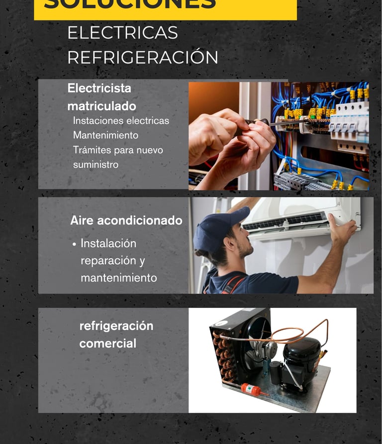 Electricista matriculado con experiencia en instalaciones, reparaciones y mantenimiento eléctrico y de aire acondicionado.